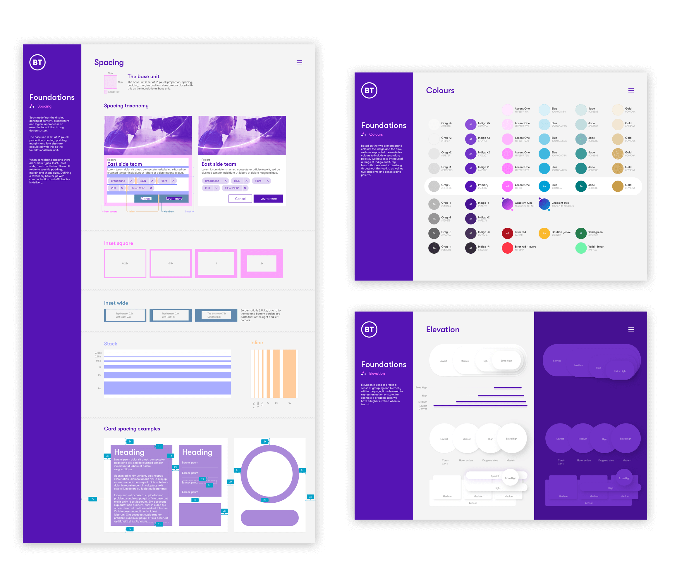 BT had just launched their new brand identity and, although marketing and print guidelines had been issued, it didn't touch on digital. With this in mind we set about interpeting what we had as a basis for the foundational elements of the design system.